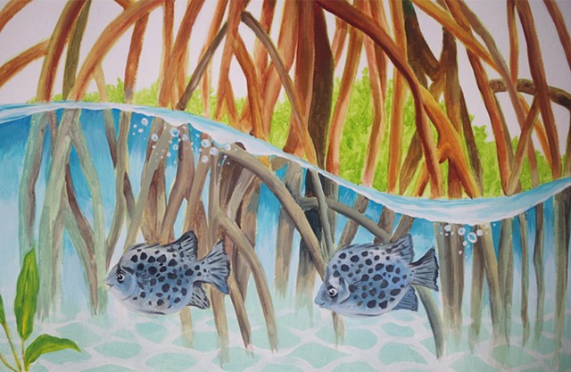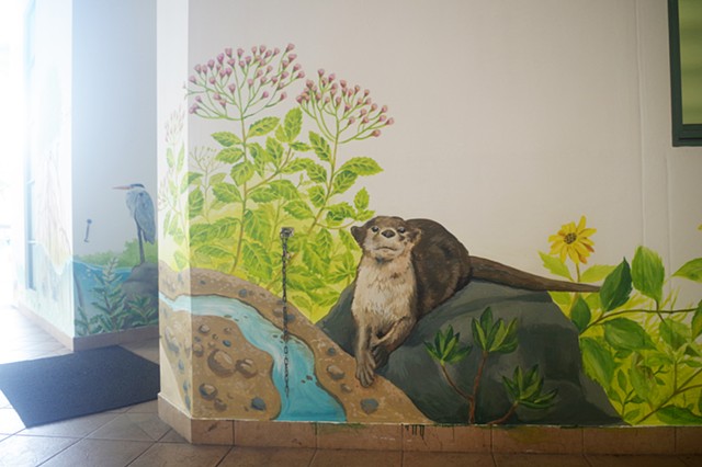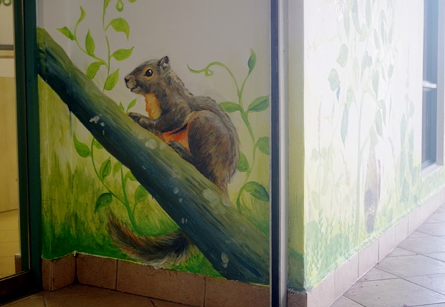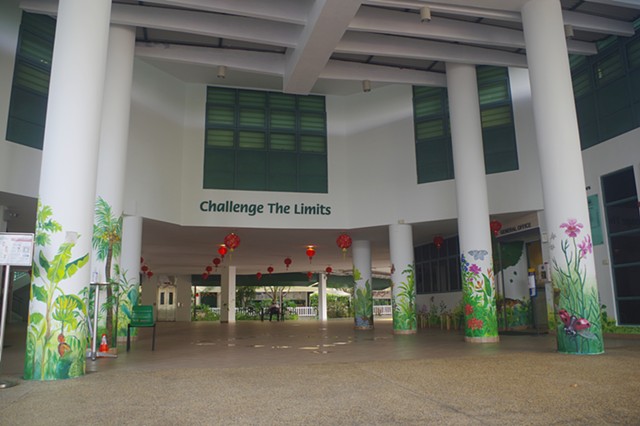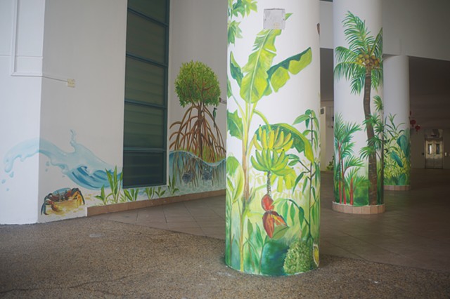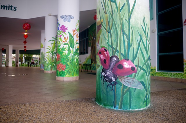 A mural of local flora and fauna for the school foyer, painted in collaboration with Isabella Teng and Iqbal Mohammed.