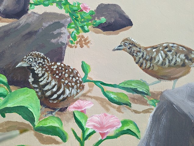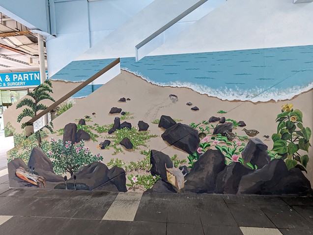Contributions to Isabella Teng's Little Islands, completed in 2023 at Tanjong Pagar Plaza. I served as the project's overall mural consultant, researched native coastal flora and fauna, and painted many birds, plants, trees and rocks.